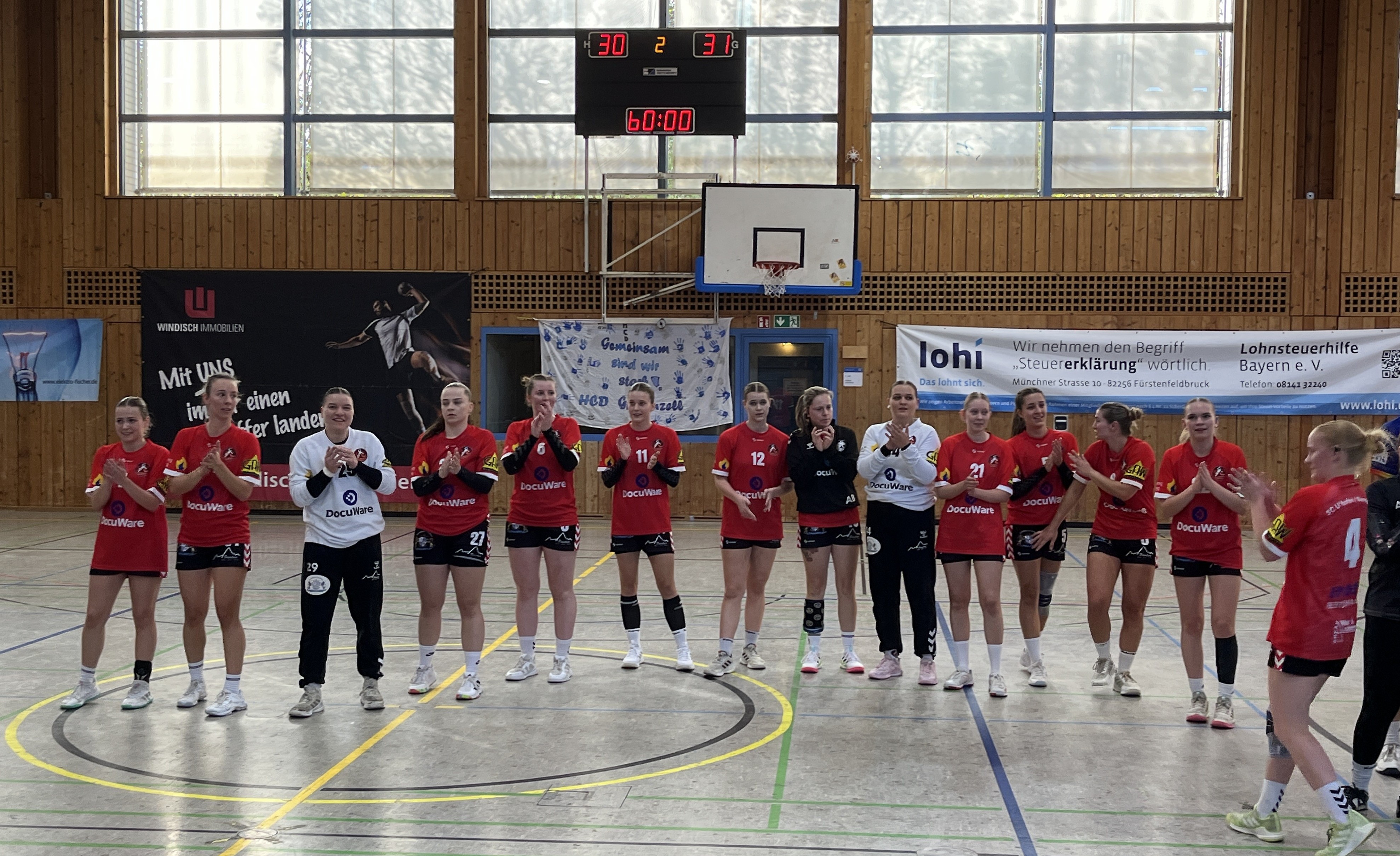 Trainer Vollnhals stellte in einer Auszeit wieder um und brachte mit Kathi Ehlers, Nadja Eierle und Alina Schneider wieder deutlich mehr Stabilität und Ruhe im Rückraum. Isi Maier und Christina Lindemiller bildeten einen starken Innenblock. Der HCD Gröbenzell lag in der Folge zwar meist in Führung, aber die Gäste blieben dran. Man merkte sie sahen eine gute Chance auf ein Erfolgserlebnis und ließen nicht locker. Isi Maier konnte nach einem Gesichtstreffer nicht mehr weiterspielen, dafür sprangen dann andere Spielerinnen in der Abwehr ein. Mit den beiden Torhüterinnen Mara Nizzardo und Sara Wechner hatte man obendrein einen starken Rückhalt.